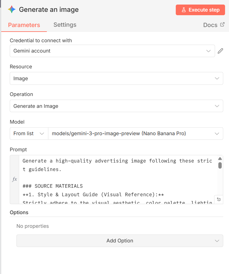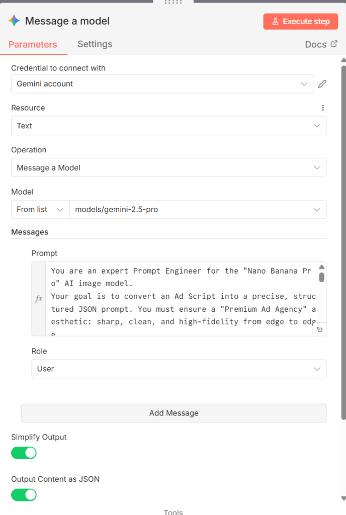 In this tutorial, we use Gemini to convert our script into a Structured JSON that generates an ad. This JSON acts like a strict “Director’s Brief” telling the image model exactly where to place the text, what camera lens to use, and how to light the scene to replicate your seed creative.