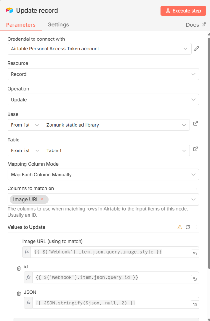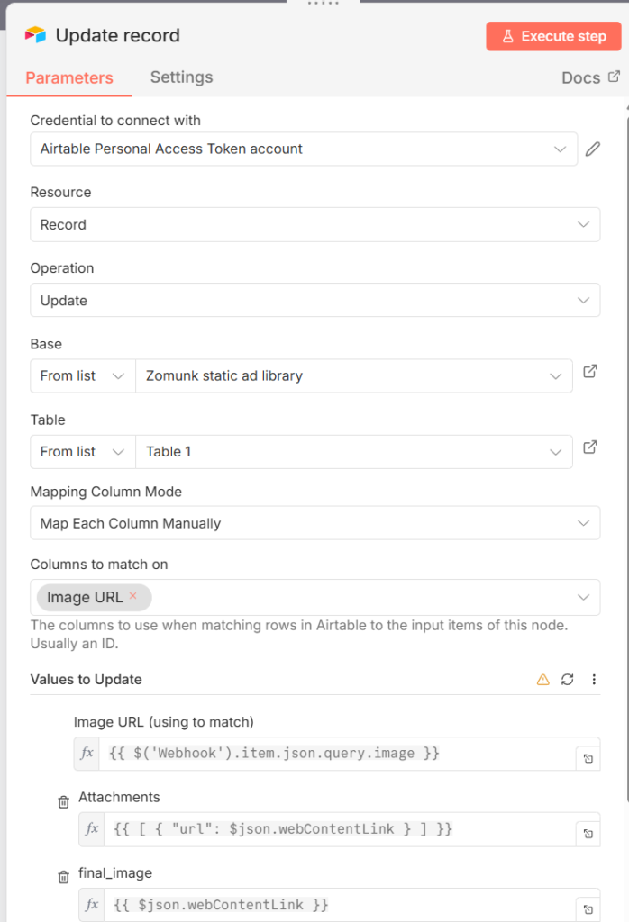 Node 4: Airtable (Update record)