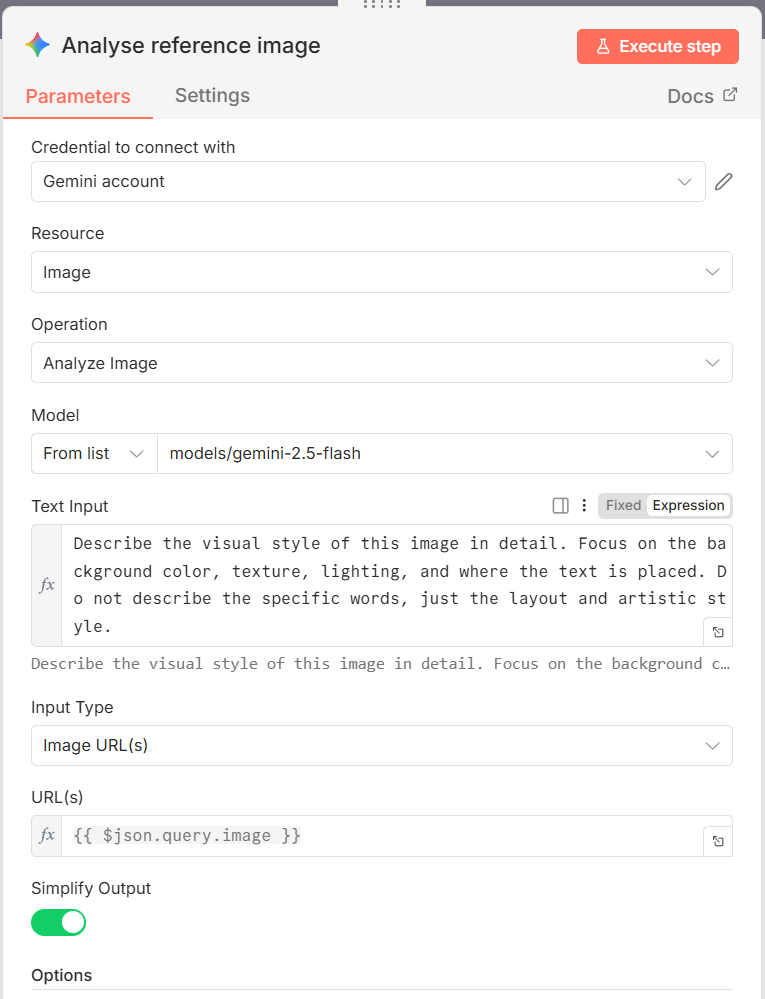 Node 2: Gemini (Analyse an image)
