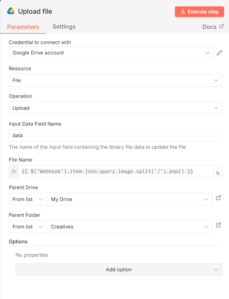 {{ $('Webhook').item.json.query.image.split('/').pop() }}You can follow a tutorial like the one below to use OAuth2 and connect your Google Drive to n8n